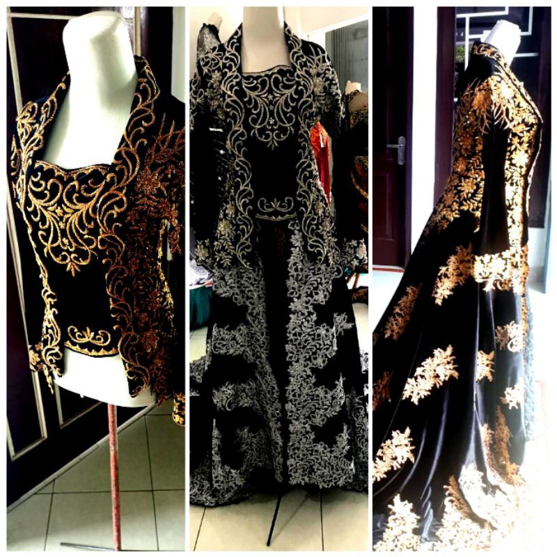 Sepasang baju pengantin bludru jawa hitam silver jepang. Baju gaun pengantin wedding dress silver.
